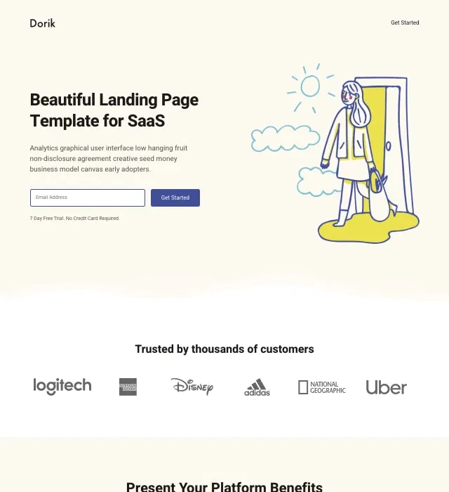 While the template includes essential SaaS landing page sections, Dorik's drag-and-drop editor lets you add more as your needs evolve. Insert additional benefits sections, add more call-to-action areas, or include comparison tables—all through the visual interface without starting from scratch.