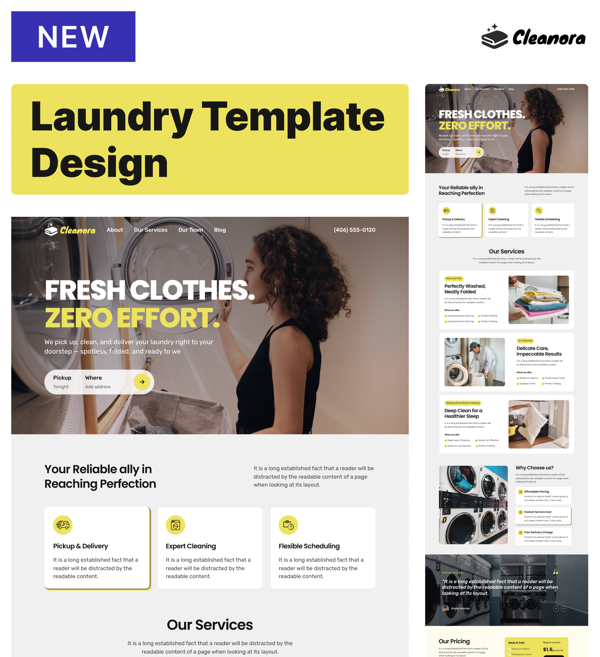 Absolutely. The services page is flexible enough to highlight in-store laundromat offerings, pickup and delivery services, or both. Customize the service cards to explain your specific operational model, whether customers visit you or you come to them.