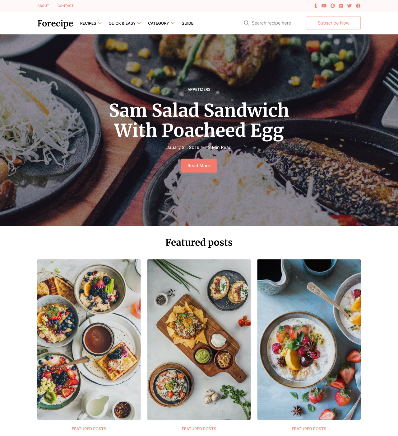 While search isn't specifically mentioned in this template's features, visitors can browse recipes through the organized category pages and navigate your content through the clear menu structure provided in the navigation.