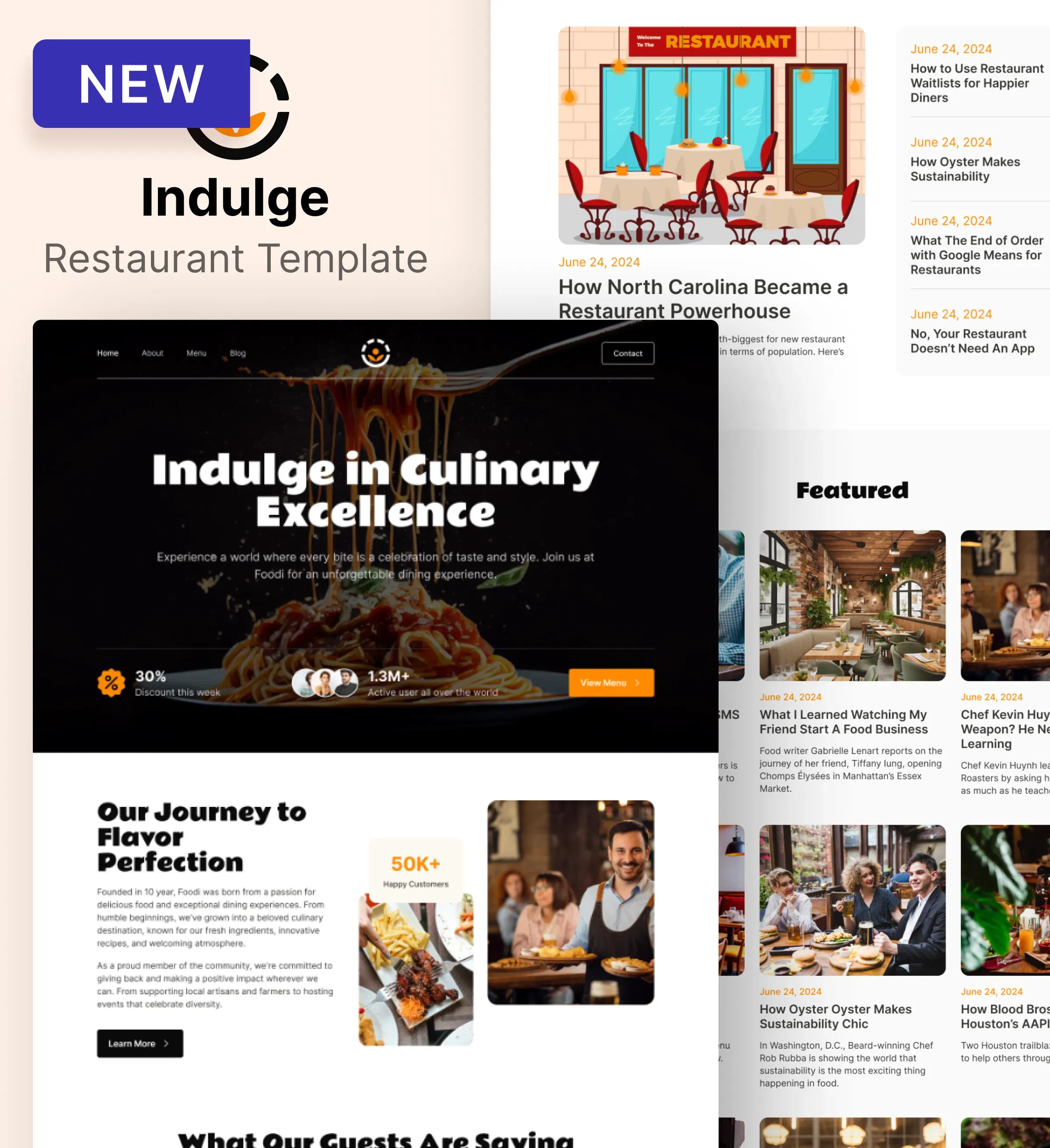 The template includes built-in SEO optimization features like customizable meta titles, descriptions, and schema markup. Add your restaurant's location information, service areas, and operating hours. Connect Google Analytics and Google Search Console for performance tracking. These tools help local customers find your restaurant when searching for dining options nearby.