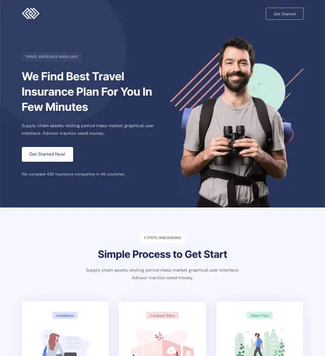 Yes, the template's structure works for any insurance vertical. Replace the travel-focused copy with content relevant to auto, health, life, or business insurance. The sections adapt to different insurance products while maintaining the conversion-focused layout.