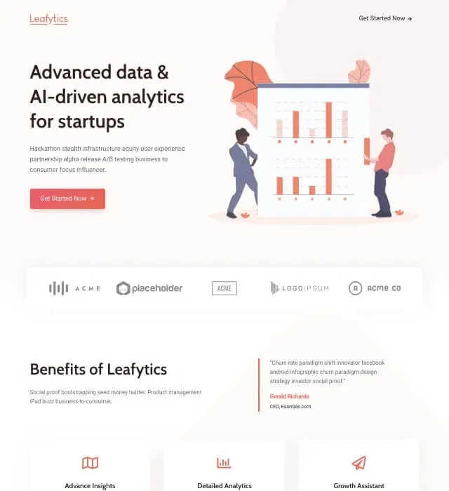 Absolutely. While designed with analytics platforms in mind, the sections work for any SaaS product needing to showcase benefits, features, pricing, and testimonials. The statistics section adapts to highlight metrics relevant to your specific offering.