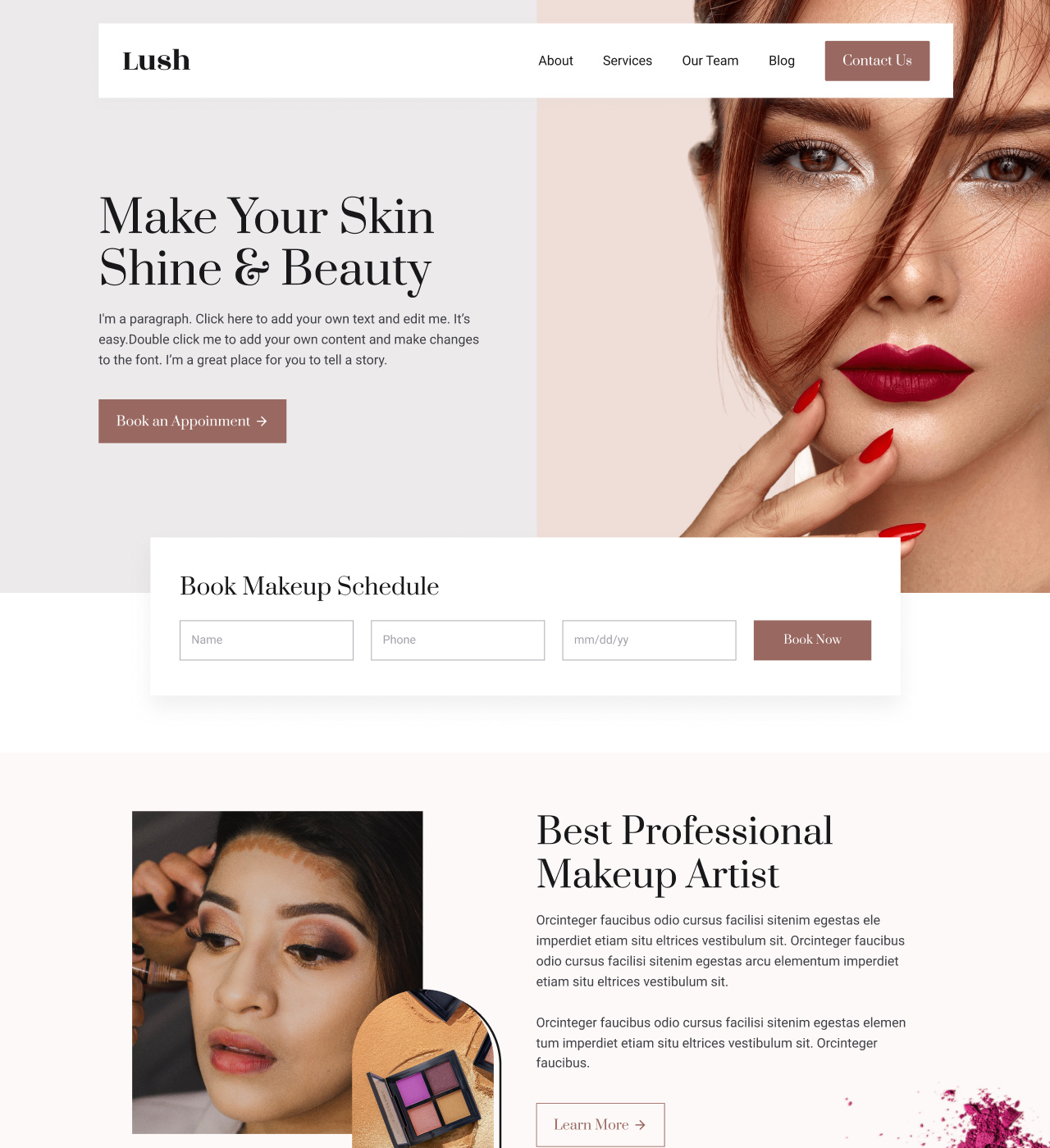 Absolutely. Salon-based businesses can emphasize the map integration and business hours sections, while mobile artists can highlight service areas and travel availability. The template's flexible structure accommodates both business models without requiring separate designs.