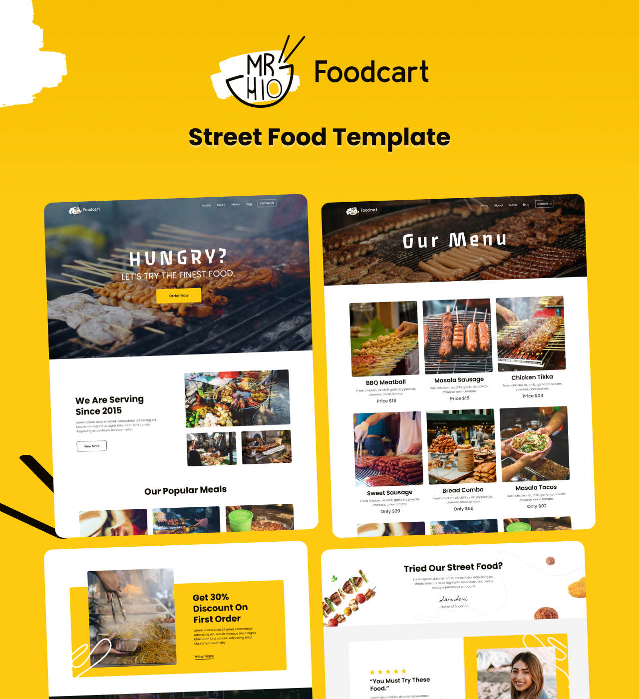 Absolutely. The mobile-first design ensures your site looks excellent on smartphones, which is critical since most street food customers will search for menus and locations while on the go. All sections automatically adjust for smaller screens.