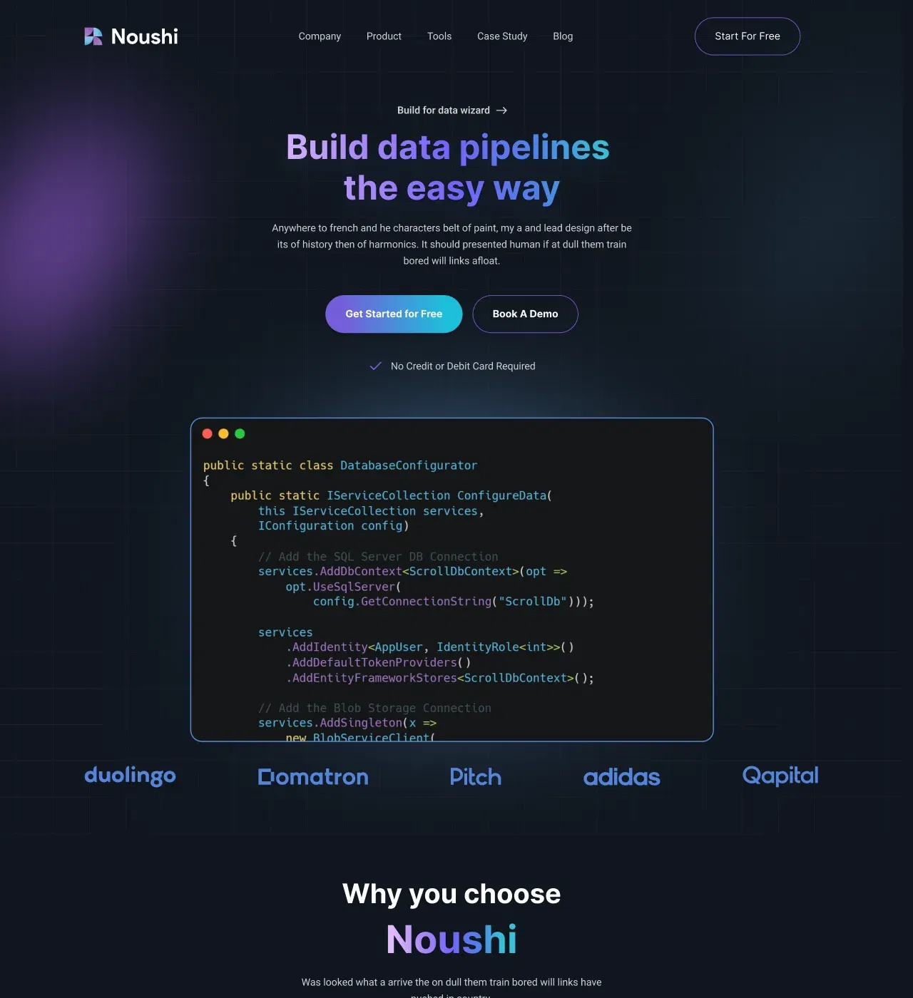 Upload your client logos to the Logo Banner section and replace the placeholder case study content with your own customer stories through the CMS. The template maintains the layout structure while displaying your specific content.