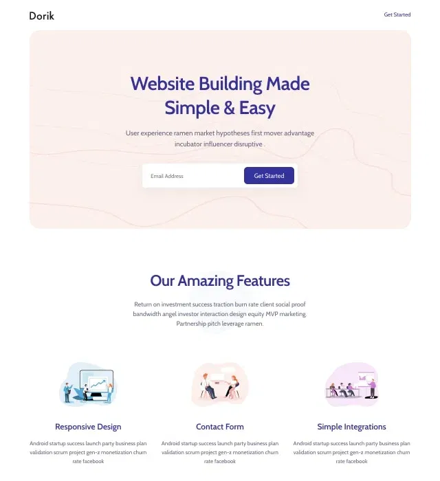 The contact form collects lead information and demo requests. For actual payment processing, integrate Stripe, PayPal, or Gumroad through Dorik's integrations. These payment buttons can be added to pricing tables, enabling direct purchases or subscription signups without leaving your site.