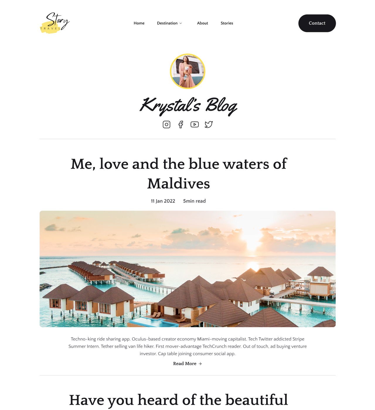 Yes, Dorik's blogging platform supports multiple authors, making this template suitable for travel couples, collaborative projects, or travel blogs featuring guest contributors. Each author can have their own profile, supporting diverse voices within your travel brand.