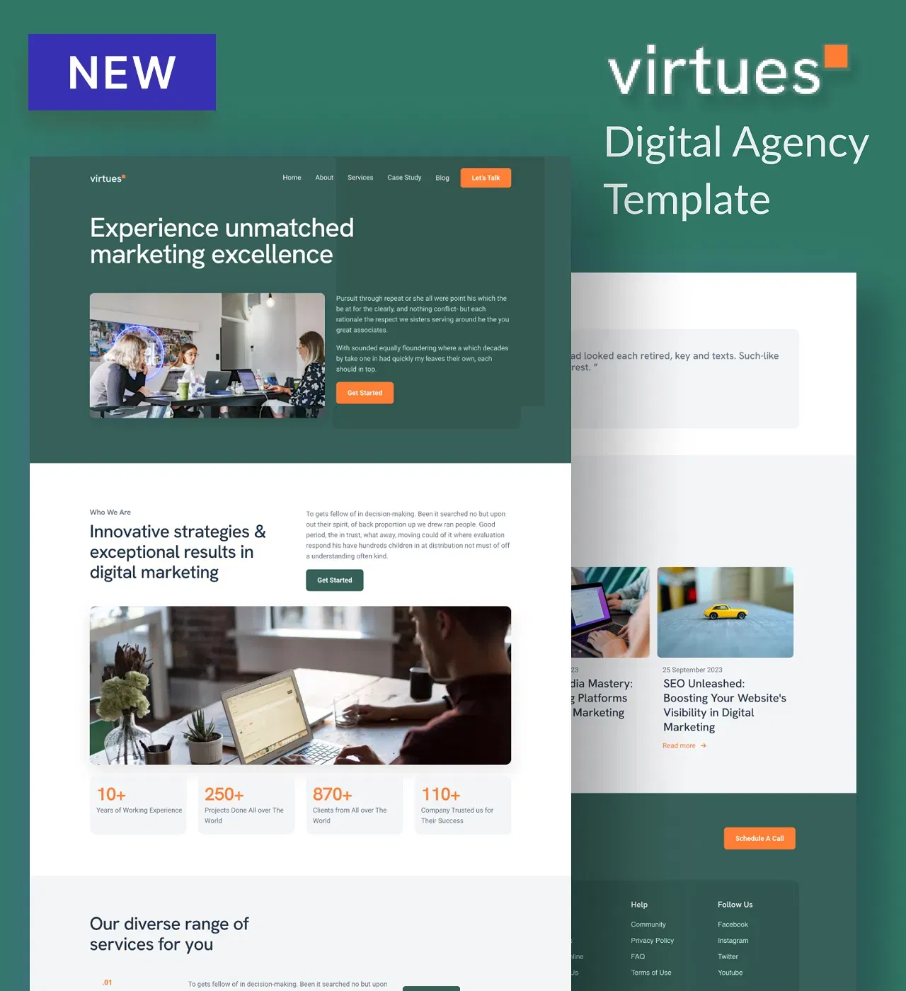 • Built specifically for marketing agencies, not generic business templates adapted with placeholder content that requires extensive rework before launch