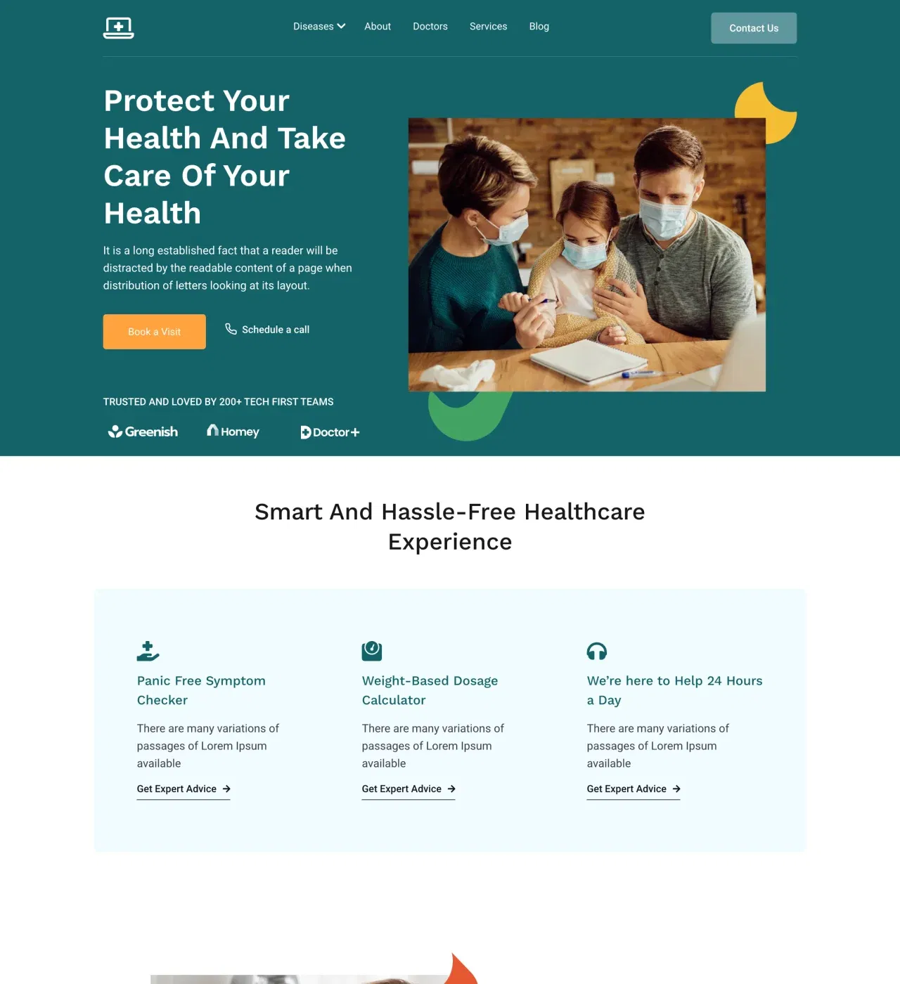 Use the dropdown menu navigation and services section to categorize specialties logically. Create dedicated pages for each service area using the disease-focused page structure, making it easy for patients to find relevant information quickly.